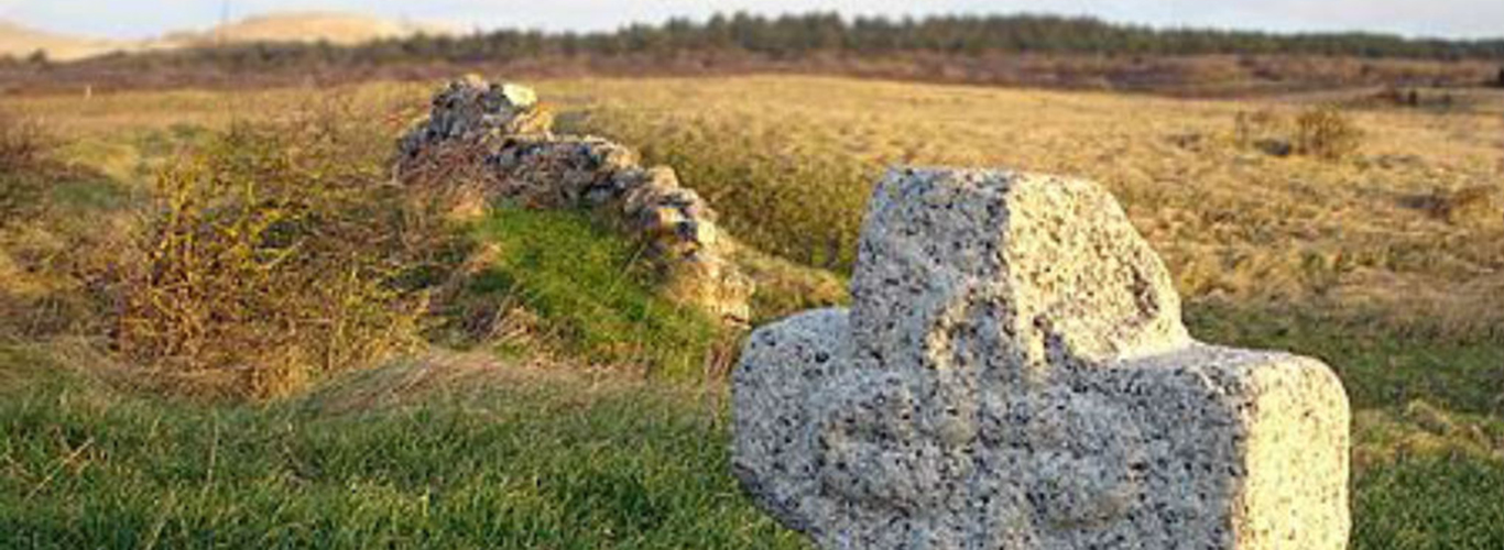 Rugbjerg Kirke Ikke langt fra den imponerende Rubjerg knude, der hæver sig 90 m over Havet, ligger ruinerne af Rubjergs gamle kirke. Kirkeruinerne lå forfå år siden i et vildnis af fyr, gran og havtorn, men i dag er dette ryddet bort og kirkens grundplan er markeret af lave græstørvsvolde. Under oprydningen dukkede der gamle gravsten frem af sanddyngerne, som sine steder når en tykkelse af tre meter. Oprindelig lå der bebyggelse omkring kirken, deriblandt præstegården, men i begyndelsen af 1600- tallet tvang sandet beboerne til at flytte. |